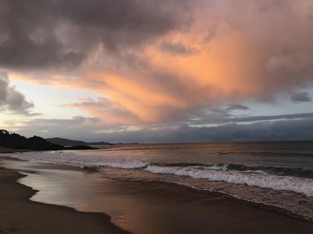 So what do you do if you can’t surf, body surf, fish, or do anything that may cause you to be rescued/treated etc… Well in this household we have slowly found our rhythm of life, but it must be said that it did take a day or three. The husband found his stride on day two when he decided, “fuck it”, the hair has to go, so trusted the 14 year old daughter to shave his hair off. I had been talking to a local at the gate (a good four metres apart) when he got it into his head that he would get rid of it. By the time I had gone inside, the hair was gone, every single bit of it. The 14 year old then decided that she had a newly discovered talent as a hairdresser so proceeded to give her younger brother a new style. Hmmm, he’s happy with his bowl cut, I’m still making up my mind (maybe it’s the chunks at the back which have yet to sway me on the positives of this cut). Walking has become a once and sometimes twice daily event which isn’t too far from the norm for me. The husband is getting in the stride (excuse the pun) of it and we have done a few epic walks this past week-up hills, along beaches, through forests. I have been privileged to see Kokopu, Tomtits, Popokotea, Kaka, to name a few of our precious native birds up close. It is like these birds are reveling in the lack of human activity with the dearth of visitors to the area.